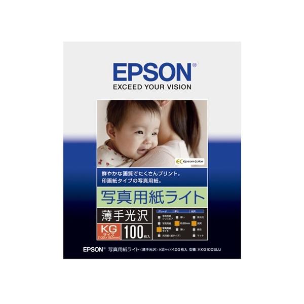 - 薄手タイプでアルバム保存やスクラップブッキングにおすすめの写真用紙。〔薄手光沢(印画紙タイプ)/KGサイズ・100枚入り〕 ■ エプソンならでは写真高画質をそのままに、 気軽にプリントできる写真用紙。 ■ 薄手なのでアルバム保存やスクラップブッキング、 メニューやポスターにもおすすめの写真用紙です。 エプソン KKG100SLU(写真用紙ライト/薄手光沢/KGサイズ/100枚)