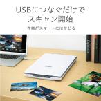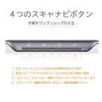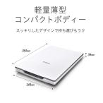 「商品情報」USBバスパワー駆動。軽量薄型、コンパクトでスタイリッシュなフラットベッドモデル。前機種と比べて、重量で約32%、容量で約28%カット。重さ約1.5kg、249×364×39mmのコンパクトボディを実現。スタンド内蔵で立てたままスキャン。立てたまま収納可能。底面に搭載したスタンドをパッと回転させるだけで立て置き可能。立てたままスキャンできるので、デスクの上で邪魔になりません。また、使わない時は立てたままデスクの隅に置いておくこともできますし、スタンドを戻して棚などに収納することもできます。「主な仕様」解像度 : 4,800dpi