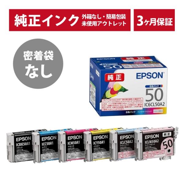 ///LINEクーポン有/// IC6CL50A2 密着袋なし 純正 インク アウトレット EPSON (エプソン) インクカートリッジ 6色セット (発送日より3ヶ月間保証付)
