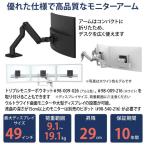 - カラーバリエーション ホワイト 45-475-216 アルミ色 45-475-026 商品詳細 ゲーミングモニターやウルトラワイド湾曲モニターにも最適な、最大19kg/49インチ までのモニターやTVをマウントできる最強モニターアームです。 使用しないときはコンパクトに折りたため、作業スペースを広く使えます。 湾曲の深さが15〜30cmあり、12.7〜19.1kgのウルトラワイド湾曲モニターを取り付ける場合は、別売のHXヘビーデューティーチルトピボット(98-540-216) が必要です。 エルゴトロン独自のコンスタント・フォース技術により、軽く触れるだけでモニターの位置調節が可能、ガススプリング式のような経年劣化がありません。 昇降機能は10000回ものサイクルテストが実施されており、長年に渡りトラブル無くスムーズに高さ調整が可能です。優れた耐久性で、保証期間は10年です。 クランプとグロメットマウントは付属しています。デスククランプは66mmまでの厚さに取り付け可能。グロメットマウントは直径10〜51mmの穴、72mmまでの厚さに取り付け可能。 パンは180°で止まるようストッパーがかかっています。 別売のトリプルモニターボウキット(98-009-026 アルミ色 / 98-009-216 ホワイト) が取り付けられます。 取扱説明書に従い組み立て、モニターを取り付けてから各部の調整を行ってください。組み立て前の状態では各部の調整はできません。 製品タイプ ディスプレイ用アーム カラー マットブラック 仕様 49インチまで、9.1kgから19.1kgまでのモニターに対応、 VESA MIS-D (100x100mm、75x75mm)、MIS-E (200x100mm)、MIS-F (200x200mmのみ) に対応。 湾曲の深さが15〜30cmあり、12.7〜19.1kgのウルトラワイド湾曲モニターを取り付ける場合は、別売のHXヘビーデューティーチルトピボット(98-540-216) が必要です。 前後伸縮約60cm、上下昇降約29cm、パン180°、回転360°、チルト後方75°/前方5°。 HXアーム、エクステンション、モニターピボット、デスククランプ、グロメットマウント、取り付け金具が梱包されています。 製品本体重量 6.9kg。 保証 保証期間は安心の10年間。 アクセサリー HXトリプルモニターボウキット (アルミニウム) 98-009-026 HXトリプルモニターボウキット (ホワイト) 98-009-21619kg/49インチまでの大型湾曲モニターや大型TV、ディスプレイをサポート