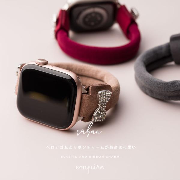 アップルウォッチ バンド レディース リボン チャーム ベロア ゴム 大人可愛い 女性 おしゃれ ブランド empire