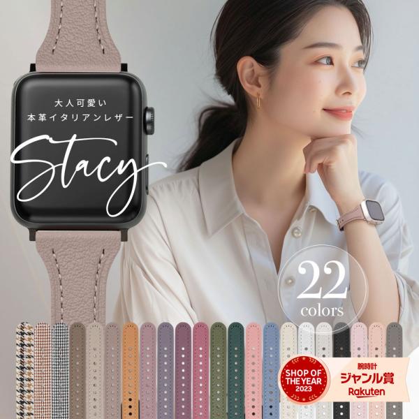 - アップルウォッチ用レザーバンド <STACY(ステイシー)コレクション> 大人可愛いくすみカラーの細みえイタリアンレザーを使用した上品な大人女子向けのお洒落なレザーバンド。 華奢見えする女性らしく大人かわいいカラーを揃えました。艶消しのバックルが上品で大人っぽく演出します。 金具部分は通常、シルバーとなりますが別売りオプションで変更することができます。 肌に触れる部分は、防水革を使用しているので装着時の汗による不快感を軽減します。 金具部分のカラー変更オプションはこちら また、通常はバンドと同色のレザー・ループが付属しますが、お好みの色に変更してもっとおしゃれに!することができます。 <商品仕様> 素材:イタリアンレザー バックル:ステンレス 長さ:75x115mm 厚み:2.5mm <対応機種> ・アップルウォッチ11 (42mm/46mm) ・アップルウォッチ10 (42mm/46mm) ・アップルウォッチ9 (41mm/45mm) ・アップルウォッチ8 (41mm/45mm) ・アップルウォッチ7 (41mm/45mm) ・アップルウォッチ6/5/4/SE (40mm/44mm) ・アップルウォッチ1/2/3(38mm/42mm) <腕周り参考サイズ> ・ベルトのみ最小サイズ:約11cm ・ベルトのみ最大サイズ:約17cm ・アップルウォッチ41mmに装着した場合の最小サイズ:約14cm ※こちらの商品は互換品であり純正品ではございません。 ※アップルウォッチ本体は含まれません。 キラキラ可愛いイニシャルチャームで飾り付けてもっと自分らしく! <こちらもおすすめ> レディース用アップルウォッチバンドもっと見る for Apple Watch > レディース > アップルウォッチ バンド