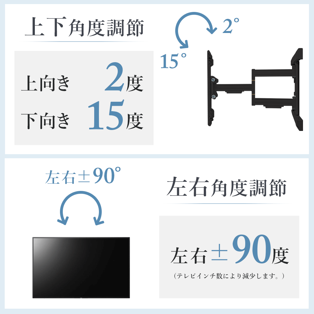 ・上下角度調節付き、適度な厚みでテレビ裏の配線も楽々。