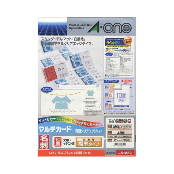エーワン マルチカード 各種プリンター兼用紙 両面クリアエッジタイプ 白無地 A4判 10面 名刺サイズ 51852 1冊(50シート) 〔×10セット〕