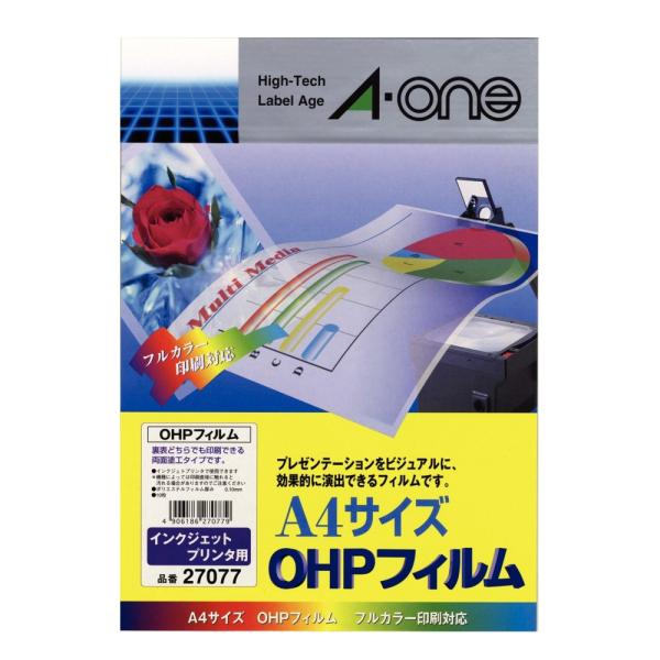- ★インクジェットプリンターに対応■10枚入り■メーカー:エーワン■品番:27077■入数:10枚■フィルムサイズ:210×297mm(A4)■フィルム厚:0.1mm■表裏どちらの面にも印刷可能