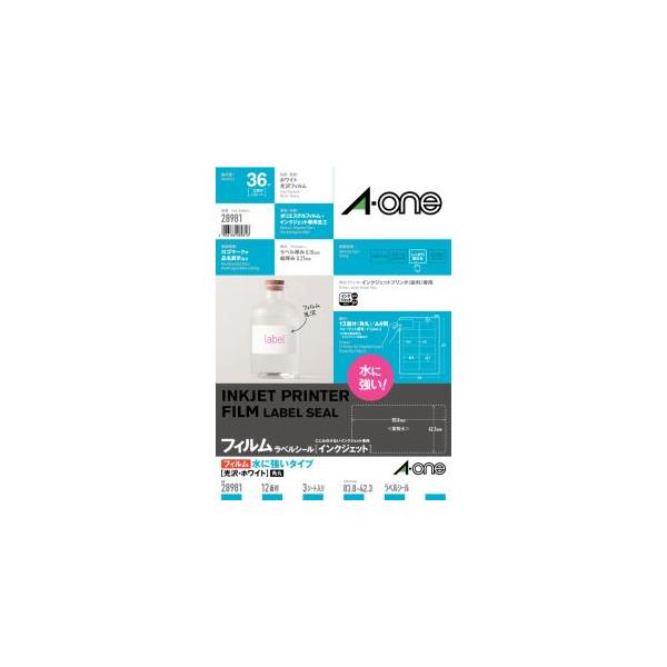 【メール便選択可】エーワン 28981 インクジェット ラベルシール A4 耐水 光沢 白 12面