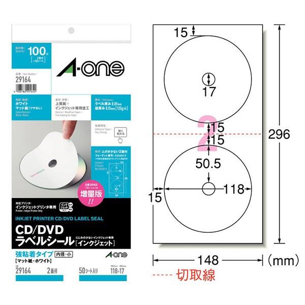 【マット紙】エーワン/CD・DVDラベルシール[インクジェット]50シート 強粘着タイプ マット紙・ホワイト 2面 内径・小(29164)/A-one