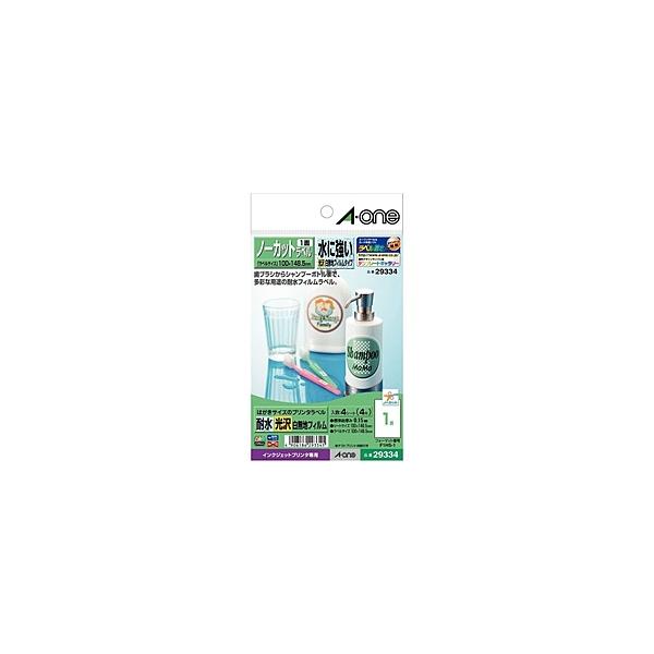 エーワン 29334 (はがきサイズラベル/水に強い光沢白無地フィルムタイプ/ノーカット/4シート入り)