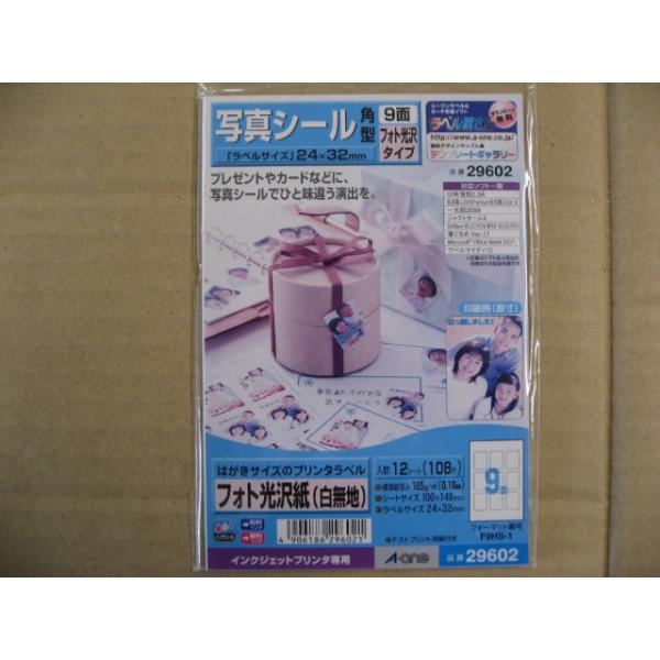 【パッケージ褪色】 エーワン 29602 はがきサイズのプリンタラベル/写真シール 角型 9面/フォト光沢紙(白無地)/12シート(108片)入り