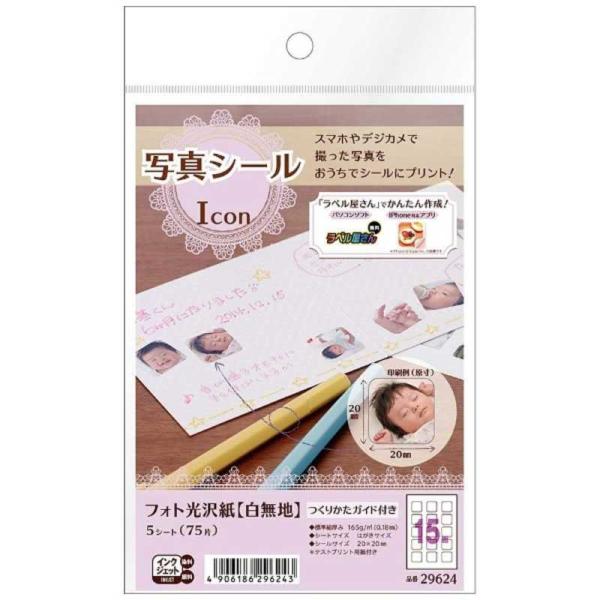 エーワン 写真シール「フォト光沢紙(白無地)」(ハガキサイズ・5シート・75片) 29624