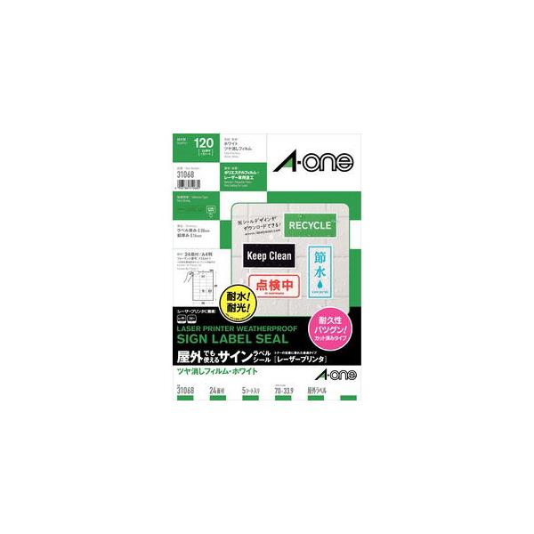 エーワン レーザープリンタ用 屋外でも使える手作りサインラベル ホワイトフィルム A4判 24面 31068 返品種別A