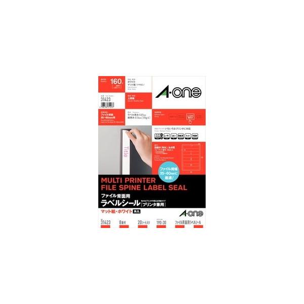 エーワン ファイル背面用ラベルシール(プリンタ兼用)マット紙 A4判 8面 四辺余白付 角丸 20シート (ホワイト) A-one 31423 返品種別A