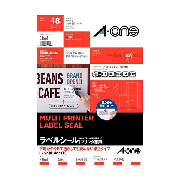 エーワン マルチラベル白修正4面 31661 31661