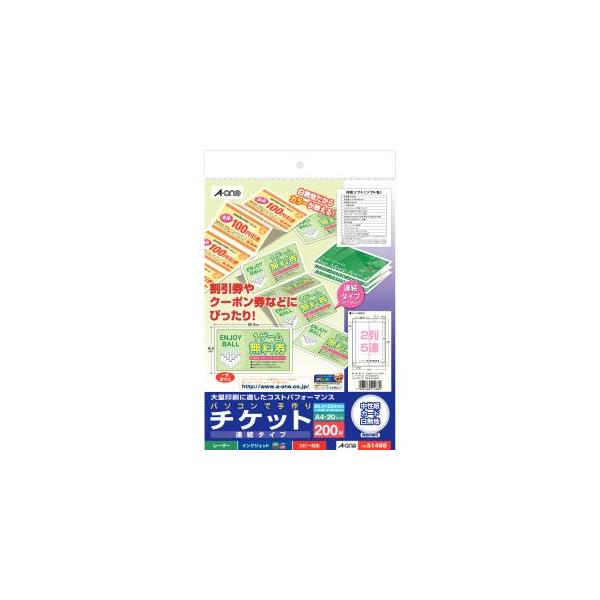 - ●サイズ縦 本体:305mm●サイズ横 本体:218mm●サイズ高さ 本体:3mm●いろいろなプリンタで印刷できるチケット用紙です。●割引券やクーポン券に最適な連続タイプです。●代表的なチケット用紙に出来るだけ近い厚みの紙を使用しています。●シート数・片数:20シート(200片)