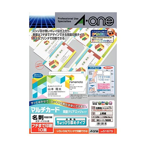 エーワン 名刺 マルチカード 両面クリアエッジ ちょっぴり厚め フチまで印刷 500枚分 51675