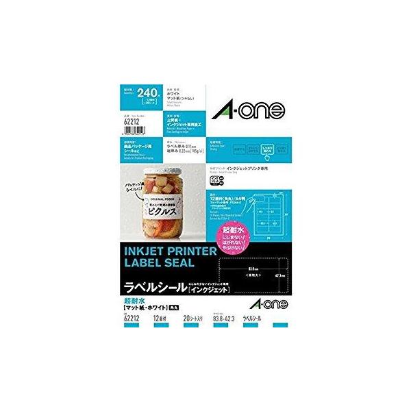 - 北海道・沖縄・離島へのお届けは別途送料がかかります。詳しくはこちらお得なセット販売エーワン 内容物表示用 収納表示用 ラベルシール[インクジェット]耐水タイプマット紙 A4判 12面 20シート入り【エーワン】62212 A4 シートサイズ:210×297mm 印刷した文字やイラストが水に濡れてもにじまず、また紙の表面が破けにくい加工を施しています。結露してもラベルシールがはがれません。 ◆一片サイズ:83.8×42.3mm ◆面付:12面(2列×6段) ◆入数:240片(20シート) ◆マットタイプ ◆より強く貼れるタイプ ◆水に強いタイプ 上質紙+インクジェット専用塗工、185g/平方メートル(0.22mm)
