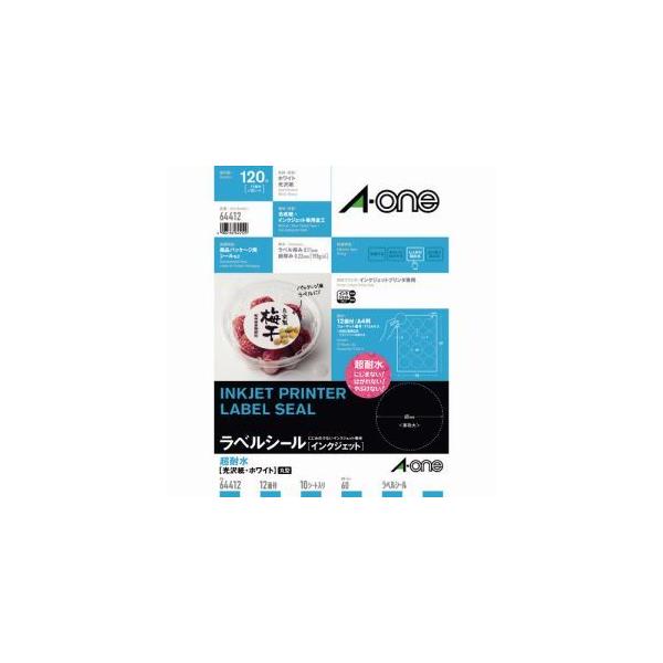 【メール便選択可】エーワン 64412 ラベルシール 超耐水 表示 パッケージラベル インクジェット 光沢紙 白 A4 12面 1袋 10シート入