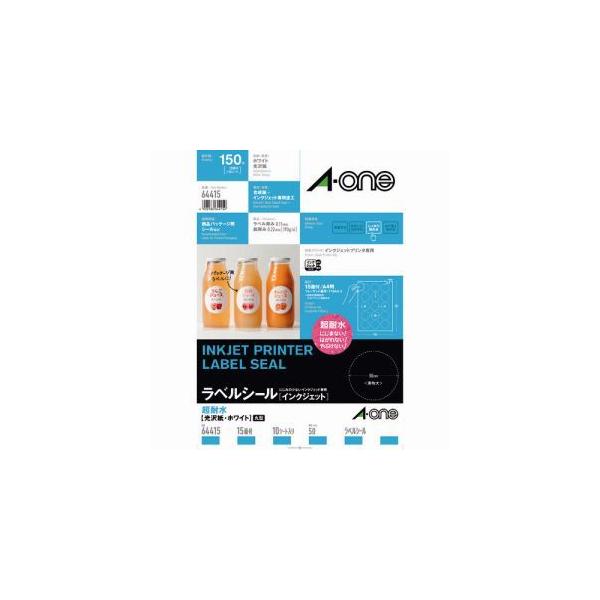 【メール便選択可】エーワン 64415 ラベルシール 超耐水 表示 パッケージラベル インクジェット 光沢紙 白 A4 15面 1袋 10シート入