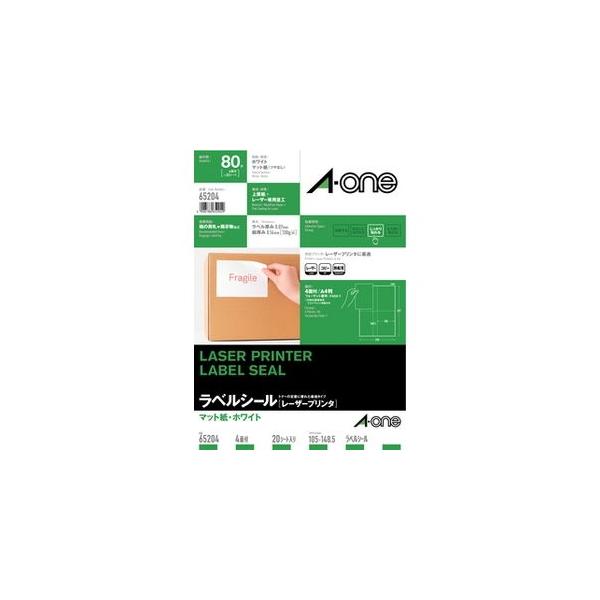 エーワン ラベルシール(レーザープリンタ)マット紙・ホワイト A4 4面 65204 返品種別A