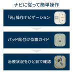 - ■「広範囲なコリ」をとらえる「3D手もみ治療」1枚のパッドに、3つの電極を搭載した大型パッドを新採用。「3D」ボタンを押すと、左右6つの電極に刺激の異なる電流が流れ、手もみ感覚のマッサージを体感いただけます。■痛みのピンポイントに治療電流を集中こりや痛みのポイントにある電極を選び、位置調節ボタンを押すと、選んだ電極に電流が集中して流れ、気になる痛みを効果的に治療します。■症状に合わせた3つの自動コース選択した部位の症状に合わせて、もみ・たたき・おし・さすり・振動の刺激が組み合わさったプログラムを選べます。(A)こり解消コースしっかりした治療感で、各部の「こり」の症状をやわらげます。(B)疲労回復コースおもに「さすり」を中心にしたソフトな治療感で、各部の「疲労」を回復します。(C)神経痛コース神経痛に適した「関節」専用のもみ方で、痛みをやわらげます■ナビに従って「簡単操作」操作手順をLEDでガイドする「光」操作ナビゲーションを搭載。各操作ボタンのLEDが順番に点滅することで治療開始までの手順を簡単にナビゲートします。■目的にあわせて「7部位」を選択可能肩、背中、腕、腰、脚、足裏、関節(ひじ)、関節(ひざ)の7部位の治療ができます。医療機器承認番号: 218AGBZX00071000----------------------------------------------------------------------------広告文責:株式会社ビックカメラ楽天 050-3146-7081メーカー:オムロン OMRON商品区分:管理医療機器----------------------------------------------------------------------------