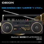 - 2ヘッド ステレオ再生/録音 カセット搭載 再生/録音 時にテープの最後になると自動的に停止する「セミオートストップメカ」を採用しました。 AM/FMワイドバンドラジオチューナー搭載 FM補完放送も聞ける仕様です。選局スケールやつまみはアナログデザインですが、 中身は受信感度の高いデジタルチューナーを採用しています。 音量・BASSつまみ 微妙な音量調整もできる音量つまみとBASS(低音域)の調整が可能な機能で自分好みの音量・音質で楽しめます。 Bluetooth接続機能 通信速度が改善されたver5.0を搭載。スマートフォンに収録した音楽が無線で楽しめます。 また、製品本体側から曲の一時停止や次の曲、前の曲のスキップコントロールも可能です。 MP3音源再生 USBメモリー、SDカードに収録されたMP3音源の再生も可能です。 充実の録音機能 USBメモリーやSDカードにMP3フォーマットで録音ができます。 もちろんカセットテープへの録音も可能なので、オリジナルカセットテープの作成も楽しめます。 災害時に役立つ 乾電池でも動作します。単1形乾電池4本で電源の無い場所でも使えます。 ■■おもな仕様■■ 商品名:ORION オリオン Bluetooth機能搭載 ステレオラジカセ SCR-B3 色/型番/JAN *(BK)ブラック/SCRB3BK,SCR-B3BK/4550557475951 *(WH)ホワイト/SCRB3WH,SCR-B3WH/4550557475968 ■アンプ部 定格出力(THD:10%) 1.1W + 1.1W ■チューナー部 受信周波数FM:76.0~108.0MHz AM:530~1629kHz ■USB端子 使用可能USB メモリー 32GB 以下 再生録音可能フォーマットMP3 録音ビットレート128kbps ■SD カードスロット 使用可能micro SD カード SDHC 32GB 以下 再生録音可能フォーマットMP3 録音ビットレート128kbps ■カセットデッキ部:ステレオ録音/再生 2 ヘッド セミオートメカタイプ ■Bluetooth 部 Ver.5.0 に対応 対応プロファイル :A2DP、AVRCP 対応コーデック :SBC ■電源AC100V 50/60Hz ■DC6V 単1 形乾電池× 4 本 乾電池連続使用時間 ラジオ受信時 :約90時間 カセットテープ再生時 :約50時間 USB/SD MP3 再生時 :約50時間 Bluetooth 接続時 :約75時間 ※ボリューム30%、新品のアルカリ乾電池使用時 ※周囲の温度や使用条件により、連続使用時間は異なることがあります 消費電力13W(動作時) ■外形寸法(約) 幅317 ×奥行89 ×高さ114 mm(突起物含む) ■質量(約) 1.3 kg(本体のみ)