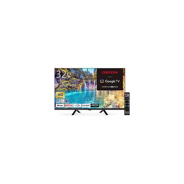 - ◆テレビもネット動画再生もこれ一台におまかせ 地上デジタル、BS/110度CSデジタルチューナーを各2基搭載。 外付けハードディスクによる裏番組録画はもちろん、リモコンに、YouTube、Netflix、Amazon Prime Video、U-NEXT、ABEMAを プリインストール及びダイレクトボタンを追加していることで、スムーズなネット動画の視聴が可能となります。 また、様々なアプリやゲームをダウンロードでき、最新映画やドラマやアニメ、バラエティなどの見逃し放送などを様々なアプリを通じてお楽しみいただけます。 (メモリー:RAM 2GB、ROM 16GB(50V型、55V型、65V型、75V型)、RAM 1.5GB、ROM 16GB(24V型、32V型、40V型))◆高画質・高音質配信コンテンツにも対応 ORIONの液晶テレビは、日本の専属エンジニアによる設計・評価により、日本の美意識、日本独自の放送品質に合わせた色調整を行っています。 ただ鮮やかなだけでない、心へ響く映像美を実現しました。◆GoogleAssistant、GoogleCast搭載で快適な操作が可能 ●画素数:1366×768(HD)、●視野角:左右約178°、左右約178°◆アプリへのダイレクトボタン付きリモコンで快適なネット動画視聴を実現 リモコン本体にYouTube等の「ダイレクトボタンを配置」、ワンタッチでネット動画に切り替えることができます。 さらにGoogleアシスタント搭載で、映画や番組を探したり気分に合ったオススメを尋ねたり、様々な音声操作ができます。◆搭載されているアプリ 本製品には最初から以下のアプリがインストールされています。 NETFLIX YouTube PrimeVideo U-NEXT ABEMA Tver Hulu Disney+ YouTube Music ◆スマートフォンの動画や写真などを大画面で ミラーリング機能に対応。 お気に入りの映画、番組、アプリ、ゲームなどを直接テレビに連携できます。お手持ちのスマートデバイスを接続して、大画面でコンテンツを楽しむことができます。 (利用にはスマートフォンに専用のアプリをインストールする必要があります)◆パソコン用モニターとしても HDMIをつなげばPCモニターとしてもご利用いただけます。◆HDR10/HLG対応 ネット動画でも使用されているHLG方式と、Ultra HD Blu-rayでも採用されているHDR10の2方式に対応しています。鮮やかな色彩と、より立体感のある映像を表現します。◆DolbyVision形式HDR対応 Dolby Vision形式のHDRに対応。驚異的な輝度、コントラスト、色彩で、生き生きとした映像を実現します。 ※OLS40WD10/OLS32WD10/OLS24WD10 は非対応◆ゲームモード(低遅延) ゲームをプレイする時に最適なゲームモードを搭載。遅延の少ない快適なゲームプレイを楽しむことができます。◆USBハードディスク録画 外付けUSB-HDDを接続すれば、テレビ番組の録画が可能。またチューナーを2つ搭載しているので裏番組の録画も可能です。 録画時間(1TB時)地デジ:約120時間。 番組表録画、自動録画、ダイレクト録画 (USBHDDは同梱しておりません)(2番組同時録画には対応していません)◆ネットワーク: Wifi(2.4GHz / 5GHz (IEEE802.11 ac/a/b/g/n))、Bluetooth 5.0◆自動チャプター機能 録画した番組に対して、任意に設定した時間毎にチャプターマークを自動的に設定します。設定時間は変更可能で、録画番組を快適に視聴できます。◆メディアプレイヤー機能 USBメモリーに保存された画像や動画、音楽データを閲覧・再生できます。 「一回再生」「繰り返し再生」ができるので、デジタルサイネージ(電子掲示)、フォトフレーム(スライドショー)としても活用いただけます。◆OK Google (グーグルTV搭載 Android11) 声で番組を探したり、デバイスを操作。 Googleアシスタント搭載で映画や番組を探したり、気分に合ったオススメを尋ねたり、様々な音声操作ができます。◆壁掛けVESA (24V型: 100 x 200mm、 32V型、40V型:200 x 200mm、 50V型、55V型:200 x 400mm、 65V型: 200 x 500mm、 75V型: 200 x 400mm)◆サイズ / 重量 スタンドなし 約幅71.8 x 奥行8.5 x 高さ42.2cm スタンドあり 約幅71.8 x 奥行18.1 x 高さ46.8cm 重量 スタンドあり 約3.7kg 消費電力 53W(動作時)、0.5W(待機時) 年間消費電力 78kWh/年◆オリオン スマートテレビシリーズ:24型 32型 40型 50型 55型 65型 75型 and more【32型】【32インチ】