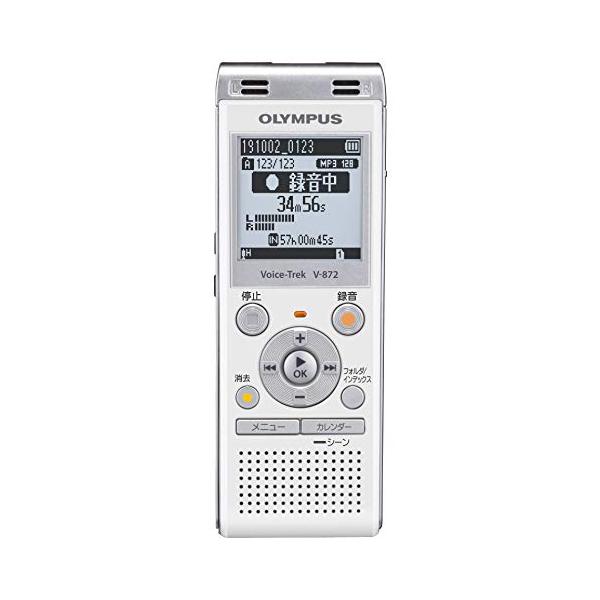 - ホワイト/-/V-872 WHT・パッケージ個数:1・録音フォーマット MP3、内蔵メモリー4GB・外部メモリーmicroSDカード対応・最長録音時間 約1 040 時間・外部ファイルインデックス機能: CD、インターネットから取り込んだファイルにインデックスが付けられます・ボイスチェンジャー機能:聞き取りやすい音程に変換できますオリンパスICレコーダー 「 Voice-Trek (ボイストレック V-872」は、2つの指向性マイクによる 「高臨場録音」、再生時の音程や速度を調整できる 「 ボイスチェンジャー」機能など、 語学学習 からビジネスまで幅広く 使えます。 1. 臨場感 の ある 高音質な ステレオ 録音 を可能にする「トゥルーステレオマイク」 搭載 2. 場所の広さや発言者との距離によって録音レベルを自動調整する「ボイスチェイサー」 3. 語学学習に役立つ「シャドーイング」・「ボイスチェンジャー」をはじめとする多彩な再生機能 4. 多数のファイルを効率的に管理できる「ミュージックフォルダー」・「ポッドキャストフォルダー」とファイル検索に便利な「カレンダー検索」機能 5. PCから取り込んだコンテンツにイン デックスを記録できる 「外部ファイルインデックス」機能