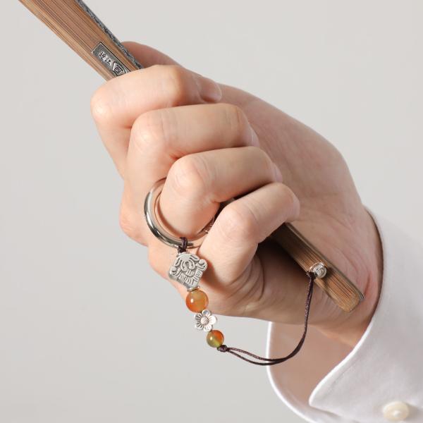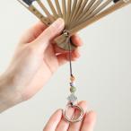 オリエンタルな雰囲気のストラップです。扇子につければリングに指を通して扇ぐこともでき、扇子が持ちやすく扇ぎやすくなります。リングはバッグなどに簡単にひっかけられるタイプなので持ち手に引っ掛けてバックに入れておけば荷物に埋もれることもないのでさっと取り出せます。