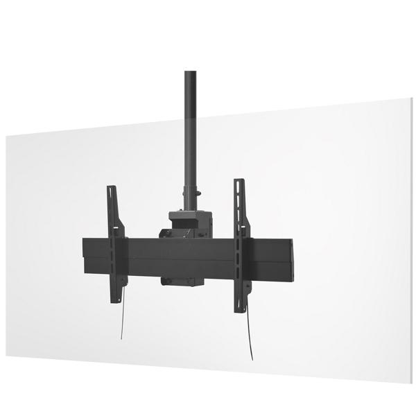 - ※返品についてディスプレイ天吊金具(ハンガー)対応サイズ66〜86型 面数1面DH-511軽量でデザイン性に優れたアルミフレームを採用。最大3連横並びのマルチ画面設置に対応。圧倒的な施工性の向上を図ったフラットパネルディスプレイ用の天吊金具(ハンガー)。■主な特長・最大3連横並びのマルチ画面設置に対応可能なディスプレイ天吊金具(ハンガー)。・軽量・デザイン性に優れたアルミフレームを採用。・搭載するディスプレイの面数・サイズ・質量に応じて8型式から選択が可能。・2面以上のマルチ設置もフレームの長さが変わるだけで、同じ作業にて施工・設置が可能。・ディスプレイ背面にVESA規格の取付金具(ユニバーサルアタッチメント)2個を取り付け、あらかじめ天井に施工したアルミフレームに引っ掛け固定する簡単かつ安全な施工仕様。軽量作業で施工者の負担も軽減。・ユニバーサルアタッチメントには施工時の簡易ロック用にバネを採用することで良好な作業性を実現。 (最終固定はボルト止めの安全設計)・3段階の画面傾斜角度調整が可能。(0°、10°、20°)・設置後に天吊金具本体を360°回転可能。(吊点数1本タイプ)・本体内にダブルコンセント付属。(同梱数量は下表を参照)。・豊富なパイプセット(別売)で、天井高に応じた設置が容易。パイプ長のセミオーダーにも対応。・パイプ内にケーブル類を通線できることで外観に配慮。・従来品DH-460やDH-300とパイプセットが供用のため、交換設置が容易。・オプションのセットトップボックス収納ケース(D-B01、DH-30B)を利用して、STBや小型PCなどの収納も可能。■スペック比較表(メーカー保証:10年) ディスプレイ面数 1面 2面 3面 対応ディスプレイ サイズ ※1 43〜65型 66〜86型 43〜55型 56〜86型 43〜48型 49〜55型 56〜65型 66〜86型 製品型式 DH-510 DH-511 DH-520 DH-521 DH-530 DH-531 DH-532 DH-533 天吊金具 本体個数 (吊点数) 1 2 3 最大搭載質量(kg) 70 140 210 アルミフレーム 長さ(mm) 700 900 1800 2800 2800 3100 4000 4700 ディスプレイ 1面あたり 最大搭載質量(kg) 70 35 70 46 70 傾斜角度調整 0°、10°、20°(3段階) 主要材質 スチール、アルミ、樹脂 表面処理 三価黒メッキ、黒アルマイト 外観色 ブラック(日塗工 N-10)相当 ディスプレイ 設置形態 片面・横設置 取付金具調整量 チルト±1°、高さ±2mm、前後±2mm 高さ調整 パイプセット側にて50mmピッチ4段階調整 ディスプレイ 取付仕様 ユニバーサルアタッチメント 対応ねじピッチ (mm) VESA 300×100 〜600×400 VESA 300×100 〜400×400 VESA 300×100 〜600×400 VESA 300×100 〜400×400 VESA 300×100 〜 600×400 外形寸法(mm) W712 H470 D243 W912 H470 D243 W1812 H470 D243 W2812 H470 D243 W2812 H470 D243 W3112 H470 D243 W4012 H470 D243 W4012 H470 D243 製品質量 (kg) 9.5 10.3 15.7 24.0 26.1 27.2 30.5 37.7 付属コンセント 仕様 125V・15A(合計1500W以下) 付属品 ・ディスプレイ取付用ねじセット: 1×面数 ・製品組立用ねじセット: 1×吊点数 ・天井化粧アダプター: 1×吊点数 ・ダブルコンセント 15A・125V : 1×吊点数 オプション パイプセット:TH-PA***SK アジャストパイプ:DH-20P 振れ止め強化キット:FK-01 / FK-02 セットトップボックス収納ケース :D-B01 / DH-30B ※ 仕様は予告なく変更する場合があります。 ※1 一部対応出来ないディスプレイがあります【検索用ワード】 液晶スタンド 液晶モニター サイネージ スタンド 店舗用 電子看板 モニタースタンド ディスプレイスタンド ディスプレイ パネルスタンド 天井 看板