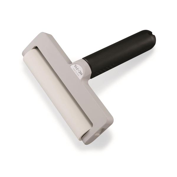 - 特徴 ●外形寸法(W×D×H):175×185×65mm ●ローラー寸法(W×φ):150×30mm ●ローラー材質:シリコン系ゴム ●ローラー色:ホワイト ●本体質量:250g ●研磨仕上げタイプ 弱粘着 シリコン系ゴム粘着ローラー。 ●ゴム部分を研摩仕上げし、薄いフィルム材なども巻き込まずにクリーニング可能です。 仕様 入数 1台 HC715SI