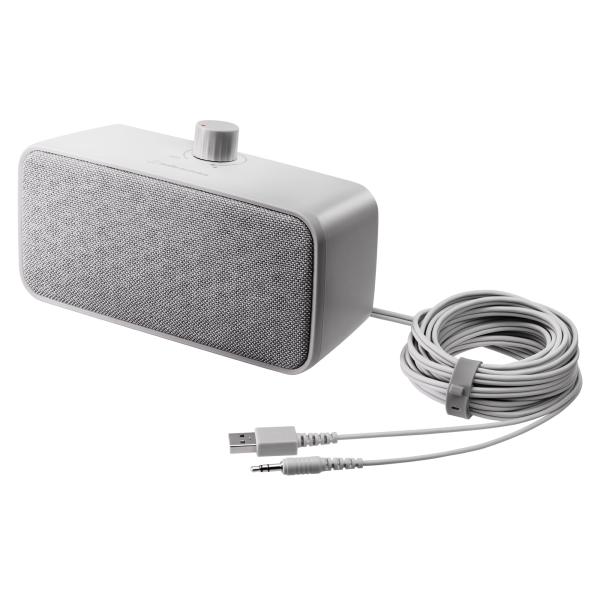 - オーディオテクニカ AT-SP270TV アクティブスピーカー ATSP270TV発売日:2023年10月6日●電池交換がいらない USB 給電方式*電池交換がいらない USB 給電方式*1テレビのUSB Type-A端子(またはUSB電源アダプター*2)にUSB電源プラグを、テレビのヘッドホン端子にφ3.5mmステレオミニプラグを接続するだけでセッティングは完了。電池交換もいらないため、バッテリー残量を気にせず使用できます。/*1お使いのテレビの仕様によりUSB端子がない、またはUSB接続しても使用できない場合があります。/*2 本製品にUSB電源アダプターは付属していません。市販のUSB電源アダプターをご使用ください。●テレビのヘッドホン端子につないで、USB 端子から給電するだけのかんたん接続テレビのヘッドホン端子につなぐだけですぐに使用できます。また、直接コードをつなぐため、テレビの音の遅れも発生しません。*お使いのテレビにより、テレビ本体とスピーカーの両方から音が出る場合があります。● ノブを回すだけのかんたん操作ボリュームノブを回すと電源が入り、そのまま回すだけでお好みの音量に調整できます。●テレビの音がはっきり聴ける音声に近い周波数帯域を補強することで、聞き取りやすい音質に調整しています。●小型で持ちやすいシンプルデザインリビングテーブルを占領せず、手元に置いたときに邪魔にならないコンパクトサイズを実現。手元に運ぶときは、スピーカーに指がかかりやすく運びやすいデザインに仕上げています。●本体に再生プラスチックを配合した素材を採用環境に配慮したPCR(Post-Consumer Resin)プラスチックを原材料に使用しています。●環境に配慮したエコパッケージ段ボールのみで構成されたパッケージで、従来品よりもプラスチック材の使用率を削減しております。●いつでも清潔に使える抗菌仕様大腸菌、黄色ブドウ球菌など一定の菌に対し増殖を抑えられるため、いつでも清潔に使えます。●部屋を自由に移動し、設置可能な 5m のロングケーブルリビングや寝室など部屋のサイズに応じてコードの長さを調整できます。ロングケーブルの余った部分を収納するために、ケーブルタイも付属しています。●集中したい時や夜時間に便利なヘッドホン対応本体に直接お持ちのヘッドホンをつないで聴くことができます。集中してテレビの音を聴きたいときや、夜間など周りに音を出したくないときなどに便利です。 【仕様】型式:アンプ内蔵スピーカーシステムスピーカーユニット:φ52mm×2最大出力 :4W(2W+2W)電源 :USB 電源(DC5V)*電源 5V/1A 以上推奨 ヘッドホン出力端子 :φ3.5mm ステレオミニジャック質量 :約 500g *コード除く外形寸法 :H86.8×W182.3×D71mm *突起部除く