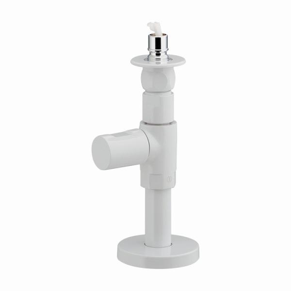 - 【商品説明】●床から洗濯機への給水を立ち上げるための立水栓です。●元が床給水だった空間へ洗濯空間をつくりたい場合に便利です。●壁給水にするために壁を壊すなどの大掛かりな工事が必要ありません。●洗面空間を新しく洗濯機置き場にするリノベーション時に活躍します。●ランドリールームに馴染みやすい白で、洗濯機周りをスッキリみせられます。●2メートルの洗濯機用給水ホースが付属しています。●ほとんどのメーカーの給水ホースにワンタッチで取付可能です。●ストッパー付きなので、万が一ホースが抜けてしまった場合も自動で水が止まります。●商品サイズ(約):D330×W230×H65mm●商品重量(約):1130g●材質:青銅●使用温度:1〜50℃●使用圧力:0.05〜0.75MPa●生産国:日本●洗濯機を使用しない時は 万一の漏水を防ぐため水栓を閉じてください。