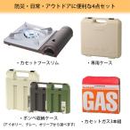 ・薄型設計にこだわったカセットコンロ本体、専用収納ケース、カセットガス3本組、カセットボンベ収納ケースがセットになった便利な4点セットです。