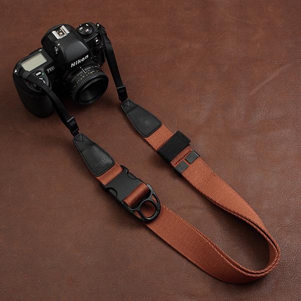 カメラストラップ コットン ブラウン 無地 ストラップ おしゃれ 一眼レフ 斜めがけ ロープ 手首 cam-in カムイン CAM1753