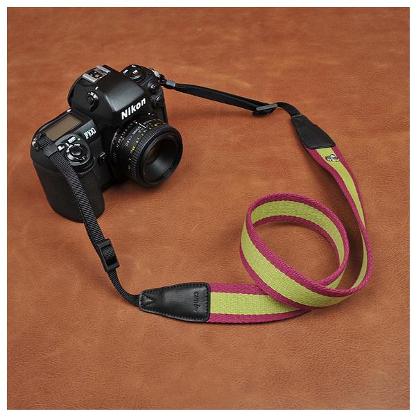 カメラストラップ コットン レッド /グリーン ライン柄 cam-in カムイン CAM8070 おしゃれ 一眼レフ 斜めがけ ロープ 手首