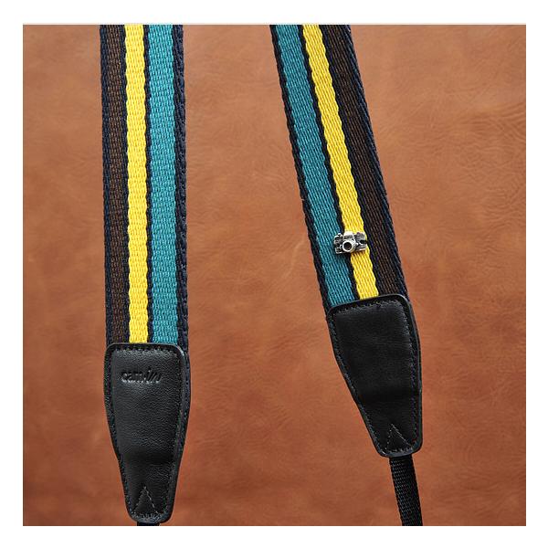 カメラストラップ コットン ブルー/イエロー/コーヒー色 ライン柄 cam-in カムイン CAM8125 おしゃれ 一眼レフ 斜めがけ ロープ 紐