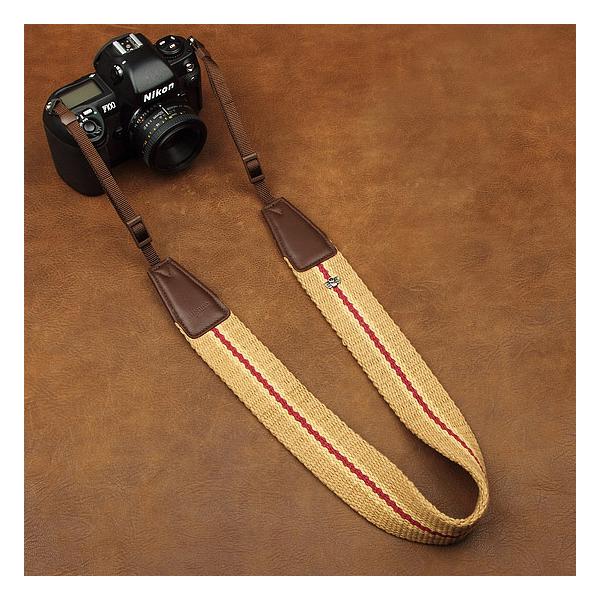 カメラストラップ コットン イエロー/ブラウン ライン柄 cam-in カムイン CAM8178 おしゃれ 一眼レフ 斜めがけ ロープ 手首 紐