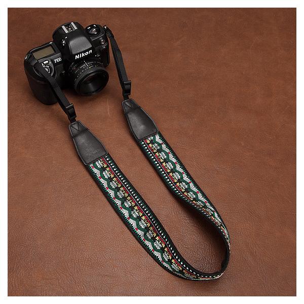 カメラストラップ コットン マルチカラー 緑系 アジアン cam-in カムイン CAM8429 おしゃれ 一眼レフ 斜めがけ ロープ 手首 紐