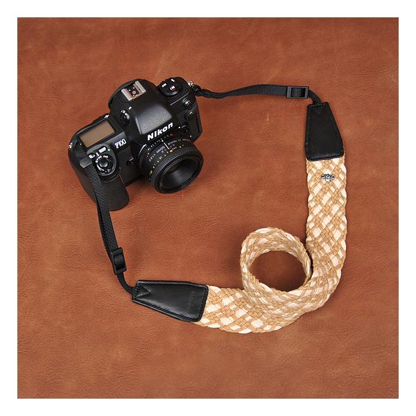 カメラストラップ コットン ブラウン・ホワイト 編み込み cam-in カムイン CAM8615 おしゃれ 一眼レフ 斜めがけ ロープ 手首 紐