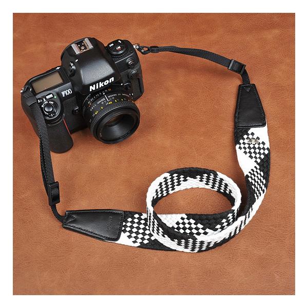 カメラストラップ コットン ブラック・ホワイト 編み込み cam-in カムイン CAM8670 おしゃれ 一眼レフ 斜めがけ ロープ 手首 紐