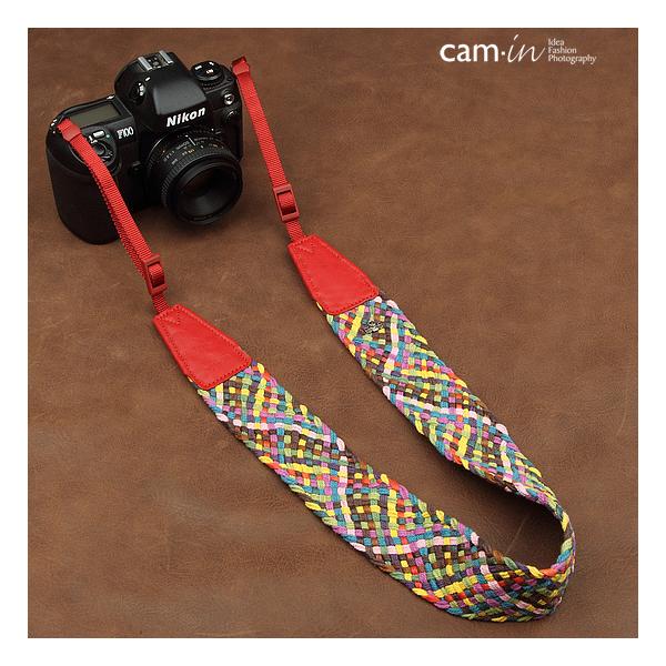 カメラストラップ コットン マルチカラー 編み込み cam-in カムイン CAM8677-2 おしゃれ 一眼レフ 斜めがけ ロープ 手首 紐