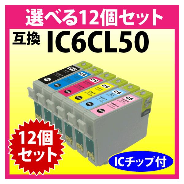 エプソン プリンターインク IC6CL50 選べる12個セット 互換インク ICBK50 ICC50 ICM50 ICY50 ICLC50 ICLM50 純正同様 染料インク