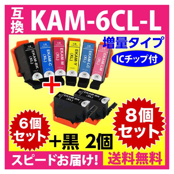 EPSON インクカートリッジ KAMー6CLーL 6色パックL(増量)+KAM-BK-L 黒 2個 合計8個のセット 対応 互換インクカートリッジ(目印:カメ)