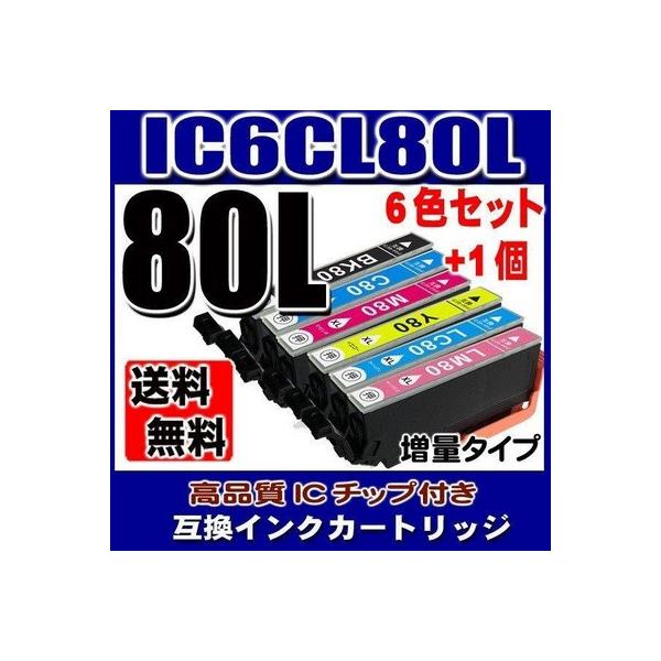 互換品 EP-707A用 インクカートリッジ エプソンインク IC80L (増量版) 6色セット(IC6CL80L)+1個 エプソンプリンターインクカートリッジ メール便送料無料