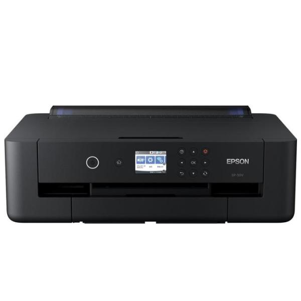 - エプソン EP-50V A3カラー対応 インクジェットプリンター 「Colorio(カラリオ)」 V-edition発売日:2017年11月9日●A3ノビ対応でもコンパクトなデザイン作品印刷の幅を広げるA3ノビに対応しながら、ボディーは幅476×奥行き369×高さ159(mm)と、とてもコンパクト。馴染みやすいスタイリッシュなデザインで、置き場所を気にする必要はありません。●Epson ClearChrome K2インクの広い色域による鮮やかなカラー表現レッド・グレーを加えた6色インクにより、広い色域表現を実現。風景写真をはじめとした幅広い作品に、より自然で鮮やかな表現を可能にします。●Epson ClearChrome K2インクが実現する、なめらかなモノクロ表現「Epson ClearChrome K2インク」は、暗部はブラック、ハイライトはグレーで印刷。2つのブラックインクにより、グレースケールの階調性を大幅にアップし、豊かな階調表現を実現しました。●インクコストを気にせずプリント低インクコストだから、作品作りも、日々のスナップ写真やドキュメントも、インクコストを気にすることなく気軽にプリントできます。●A3ノビ対応で、迫力のある写真印刷風景や人物の魅力を大きく引き出すのが、A3ノビサイズに大伸ばしされた写真です。EP-50Vは繊細な色味までも美しく表現します。しかも、四辺フチなし全面印刷でのプリントなら、まさに大迫力です。●電源を切ったままでも、プリント時に「自動電源オン」わざわざ電源ボタンを押さなくても、印刷スタートに合わせて電源オン。Wi-Fi接続でスマートフォンからでも、USB接続のパソコンからでも自動で動作します。●自宅で、オフィスで、ワイヤレスプリント無線LAN対応のカラリオなら、プリンターとパソコン、スマートフォンなどがワイヤレスでつながります。プリントの度に移動する手間もなく、プリンターをパソコンの横に固定する必要もなくなり、もっと自由にプリントができて便利です。また、ネットワークでのスキャンも可能になります。●写真の新しい楽しみ方を提案する「Epson Photo+」「Epson Photo+」は、写真プリントをもっと楽しめるPC向けアプリケーションです。PCに保存されている写真だけでなく、スキャナーやデジタルカメラからの取り込み、Webクラウドからのダウンロードにも対応しています。●とっておきの写真を手づくりフォトブックにお気に入りの写真を集めて、フォトブックを作れます。シーンごとの写真集がカンタンに作れて、カラリオで好きなときに何冊でも印刷できます。【仕様】印刷方式/最高解像度:MACH方式/5760×1440dpiコントロールコード体系:ESC/Pラスター(コマンドは非公開)、ESC/P-R、ESC/P-RJインク:6色、染料、独立型インク両面印刷(自動):標準対応給紙容量:・フロントトレイ:A4:最大200枚(75g/m2)、ハガキ:最大65枚 ・リア(背面)トレイ:・写真用紙(最大枚数20枚、最大サイズA3ノビ ・普通紙(最大枚数50枚:75gm2、最大サイズA3ノビ、ハガキ:最大20枚)用紙サイズ:カード、名刺、L判、2L判、KG、ハイビジョン、六切、四切、A6縦〜A3ノビ縦用紙厚さ:普通紙/0.08〜0.11mm、エプソン社純正プリンター用紙/最大 0.30mm、リア(背面給紙):最大0.6mm封筒:洋形封筒1号〜4号、長形封筒3号/4号、角形2号、20号ハガキ:郵便ハガキ、郵便ハガキ(インクジェット紙)、郵便光沢ハガキ(写真用)、郵便往復ハガキ、純正ハガキ (注)必要マージンにご注意くださいBlu-ray/DVD/CDプリントトレイ:フロントローディング方式(手差し)12cmメディア対応インターフェイス(ネットワーク含める):Hi-Speed USB×1、10BASE-T/100BASE-TX、IEEE802.11b/g消費電力:24W電源電圧:AC100V±10%外形寸法(幅×奥行×高さ)収納時:476×369x159mm外形寸法(幅×奥行×高さ)使用時:476x785x411mm質量(注)インクカートリッジ、電源ケーブル含まず:約8.5kg本体同梱品:セットアップ用インクカートリッジ、電源コード、保証書、クリーニングシート(背面トレイ専用)、ソフトウェアディスク、ディスクトレイ、スタートガイド、使い方ガイド印刷速度(標準):・約2分23秒(A3ノビ写真用紙[光沢]) ・約34秒(L判・写真用紙[光沢])
