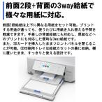 - 商品説明★ おうちプリントをもっとキレイに、もっと快適に。写真や年賀状、文書をキレイに残す。「とっておきの写真や大切な方に送りたい年賀状、お仕事用の資料をキレイに仕上げたい」そんなニーズにお応えするために、シアン、マゼンタ、イエロー、ブラックの基本4色に、ライトシアン、ライトマゼンタの2色を加えた6色インクで、キレイにプリントしますカラリオなら、カンタン操作なので、スマホやパソコンから、あっという間にプリントできます。★ 普通紙にプリントしても写真がキレイ普通紙での写真画質が鮮やかでキレイ。★ 自動両面プリントコンパクトなボディーに、自動両面プリントユニットを標準装備しています。大量のプリントをしたい時、用紙を節約してプリントしたい時に便利です。ハガキの自動両面印刷にも対応しています。(注)ハガキの自動両面印刷には、専用のソフトウェアが必要です。★ ディスクレーベルプリントに対応大切な写真を保存する時や、プレゼントする時に便利なディスクレーベル印刷機能を搭載。(注)Blu-ray/DVD/CDレーベルの印刷面に大量に印刷する場合は、事前に印刷の状態を確認してからご使用になることをお勧めします。(注)Blu-ray/DVD/CDレーベルの印刷面は、エプソン純正プリンター用紙と同様の保存性能は発揮できません。(注)Blu-ray/DVD/CDメディア(インクジェット用ホワイトレーベル)につきまして各Blu-ray/DVD/CDメーカーにお問い合わせください。★ L判印刷 1枚約13秒 たくさんの写真もすばやくプリントL判1枚が約13秒の高速プリント。「高速MACHヘッド」で、一度に吐出するインクの量も吐出回数も大幅アップ。高速かつ高画質プリントを実現しました。(注)印刷速度および印刷コスト算出条件。★ 失敗写真も美しく。Epson Color写真自動補正「オートフォトファイン!EX」人物写真も風景写真も自動で見分けて、自然で好ましい色に自動色補正します。逆光で失敗してしまった写真も、プリンターが自動で写真データから人物の顔を判別し、明るく、よりキレイな肌の色に自動補正してプリントします。★ さらに進化したインク技術、Advanced-MSDTプリントに応じてインクのサイズをきめ細かく調整し、なめらかなグラデーションや繊細な明るさなどをより美しく表現します。写真プリントはここまでキレイに!カラリオ独自の「6色インク」と「Advanced-MSDT」により、色再現が難しい人の肌も、より忠実に、より階調豊かな写真に仕上がります★ 写真高画質の決め手、マイクロピエゾヘッド熱を使わず、電圧を微細にコントロールすることでインクを飛ばします。これによりインクが劣化せず、優れた耐久性を実現。さらに、より正確なインク吐出ができるため、緻密な描画や繊細なグラデーションなどもひときわキレイに再現します。★ 生活の中で役立つカラーコピー雑誌やレシピをカラーコピーしたり、使い道いろいろ。突然コピーが必要になったときも、プライベートな情報が載っていたり、機密性の高い書類のコピーなどでも、おうちでのコピーなら便利&安心です。★ 背景除去機能再生紙からのコピーでも、紙地の色をすっきり除去。紙地の色を除去しても色の薄い網掛け等はしっかり再現。★ 置き場所を選ばない、コンパクトボディーぎゅっと多機能をつめこんだコンパクトサイズ。さらに、リビングなど、生活の中に調和できるよう、デザインにこだわりました。スペック* 本体サイズ(幅×高さ×奥行)mm…・収納時:390×339×141mm(幅×奥行×高さ)・使用時:390×598×196mm(幅×奥行×高さ)* 本体重量:約6.8kg* インク(独立・一体型)(多機能プリンタ):独立* インク色数:6色* 用紙サイズ:L判〜A4* 自動両面プリント:対応* 縮小・拡大:25〜400%(1%刻みで設定可能)* 印刷速度:[標準]約1分1秒(A4写真用紙 光沢)、約13秒(L判写真用紙 光沢)* コピー:連続コピー枚数:1〜99枚* 無線LAN機能:対応* スマホ接続:対応* スキャナ:センサータイプ:CIS方式* スキャナ:解像度(dpi):主走査1200dpi/副走査:2400dpi* スキャナ:最大原稿サイズ:A4* ADF(オートドキュメントフィーダー):非対応* FAX機能:非対応* ディスクレーベルプリント:対応* 給紙容量…[給紙容量 ※枚数は紙質により異なります。]フロントトレイ:A4 最大100枚(75g/m2)、ハガキ 最大60枚(上トレイ 最大20枚、下トレイ 最大40枚)リア(背面)トレイ:手差し最大枚数1枚(最大サイズ A4、リーガル、最大紙厚 0.6mm)[Blu-ray/DVD/CDプリントトレイ]フロントローディング方式(手差し)、12cmメディア対応* プリンタ解像度:5760dpi* インタフェース…・Hi-Speed USB×2(PC接続用×1 背面、外部記憶機器接続用×1 前面)・IEEE802.11b/g/n(Wi-Fi 4)* 対応OS…・Windows 7〜・Mac OSX 10.9.5〜* 消費電力:約17W(スタンドアローンコピー時)* 付属品・セットアップ用インクカートリッジ:ブラック、シアン、マゼンタ、イエロー、ライトシアン、ライトマゼンタ・ソフト:ソフトウェアディスク(ユーザーズガイド、ドライバー等)、使い方ガイド他(紙)・その他:ディスクトレイ、電源コード、保証書、ハガキ印刷向き確認シート* 用