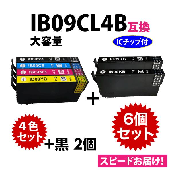 IB09CL4B 4色セット+黒2個 6個セット スピード配送 大容量 エプソン プリンターインク 互換インク IB09KB CB MB YB