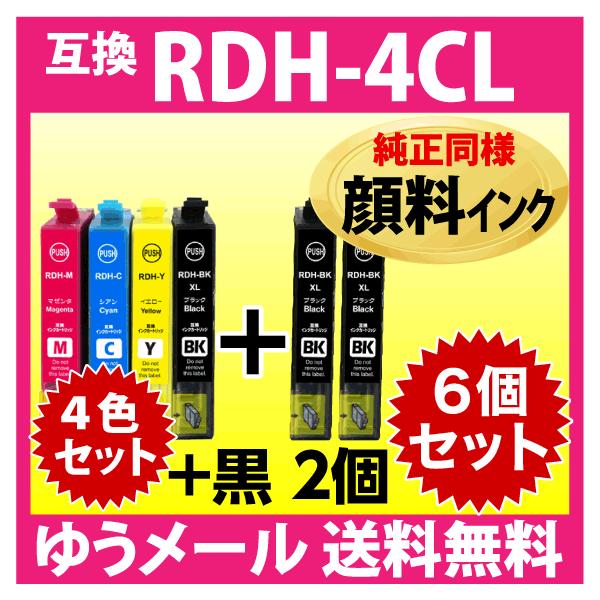 RDH-4CL 4色セット+黒2個 6個セット 増量ブラック〔純正同様 顔料インク〕エプソン 互換インク プリンターインク PX-048A PX-049A