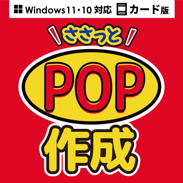 - 『ささっとPOP作成』は、パソコン初心者でも簡単にデザインテンプレートから、POPを作成できるソフトです。 「価格」 「おすすめ・注目」 「お知らせ・掲示」「季節・イベント」「商品・メニュー」など、あらかじめ用意されたジャンルのテンプレートを選ぶだけで、ささっとPOPが作成できます。 文字には影や縁取りといった装飾が可能で、ゴシック系、手書き風、和風フォントをいくつか収録しています。四角や星型などの図形、吹き出しやフレームといった素材も収録しており、デザインの幅を広げます。 さらに、お手持ちの写真を取り込んでのトリミングや色補正はもちろん、QRコードの生成機能も搭載。CSVやExcelの宛名データを読み込んで、テキストの枠に宛名や住所を差し込むことができます。 プリンターはA4用紙までの対応でも、店頭向けのポスターなどを大きく作成したい場合に、デザインを分割して印刷し、印にあわせて貼り合わせることができます。 また、作成したデータはPDFや画像形式(JPG、PNG等)で出力できるため、ネットプリントへの入稿にも対応しています。手軽さと多機能を兼ね備え、店舗運営やイベント準備を強力にサポートする一本です。 対応PC メーカーサポートを受けられるWindowsパソコン ※Macには対応しておりません。 OS Windows 11 / 10 CPU 各OSが推奨する環境以上 メモリ 各OSが推奨する環境以上 ディスプレイ 1280×768以上の解像度で色深度32bit True color以上表示可能なもの ※画面の解像度が1280×768未満、画面の文字サイズ設定が100~150%以外の場合は、『ささっとPOP作成』の画面が正常に表示されません。(解像度と文字サイズ設定の組み合わせによっても正常に表示されない場合がございます。) ハードディスク 10GB以上の空き容量(インストール時) ※上記以外にシステムドライブにデータ保存のための空き容量が必要となります。 スキャナー TWAIN32ドライバーが対応しているスキャナー プリンター A1 / A2 / A3 / A4 / A5 / B3 / B4 / B5 / B6 / ハガキサイズの用紙に印刷可能なレーザーもしくはインクジェットプリンター ※プリンターの印刷可能領域によっては、印刷内容が一部切れてしまう場合もあります。 ※一部のプリンターではパソコンとの組み合わせ等により、対応用紙サイズであっても印刷できない場合もあります。(複合機等の特殊な構造をしたプリンター等で発生しやすい現象となっております。) 対応画像形式 画像読み込み:PDF / BMP / JPEG / PNG / TIFF / EMF 画像書き出し:PDF / BMP / JPEG / PNG / GIF 差込データ形式 csv / xls / xlsx 入稿データ形式 対応形式 :PDF カラーモード :CMYKモード / RGBモード 塗り足し設定:0mm※ / 1mm / 3mm / 5mm ※0mmで設定した場合トンボ付での出力はできません。 トンボ設定:塗り足しを設定した場合にトンボを付けて出力することができます。 その他 インターネット接続環境必須 Microsoft Visual C++ 2015 再頒布可能パッケージがインストールされている環境が必要 ※オンラインマニュアルの閲覧、Webからテンプレートをダウンロード、マイページへの登録及び本ソフトに関する最新情報の確認やアップデートを行う際にはインターネット環境が必要となります。 ※カード版はシリアルナンバーとダウンロードおよびインストール手順が記載されたものが同梱されており、ご利用にはインターネット環境が必要です。(インストール用ディスクが付属していません) ※パッケージやマニュアル等のOS表記につきましては、ご購入時期によって異なる場合がございます。 ※Windows 10では、最新の拡張セキュリティ更新プログラム(ESU)が適用された環境でお使いください。 ※マイクロソフトのサポート期間が終了しているOSでの動作は保証いたしません。また弊社ユーザーサポートも対象外です。また、Mac OSには対応しておりません。 ※32bit/64bitで動作いたします。日本語設定でお使いください。 ※タブレットモードではお使いいただけません。デスクトップモードでお使いください。 ※OSが正常に動作している環境でお使いください。対応OSの動作環境を満たした環境でのご利用が前提となります。機能アップデートやセキュリティアップデートなど最新のアップデートが適用されている環境でお使いください。Server OSには対応しておりません。管理者権限を持ったユーザーでお使いください。 ※他のソフトとの互換性はありません。 ※HEICファイルには対応しておりません。別形式に変換してからソフトにお取り込みください。 ※特殊なファイル(CMYKカラーモードの物や、Web表示に特化したファイル等)は、本ソフト上では正常に読み込めない場合があります。 ※入稿用データは、PDF形式で出力してください。 ※本ソフトには14種類のフォントが収録されていますが、その他にお使いのパソコンにインストールされているフォントの中から選んで使用することができます。また入力できる日本語は、JIS X 0208(JIS第1第2水準)の文字に対応しています。一部のフォントや特殊文字・外字等は使用できない場合があ