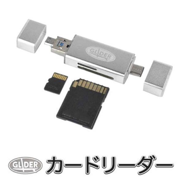 カードリーダー 銀 MicroSD SDカード Type-C USB MicroUSBコネクタ対応 カメラ/Android/PC用 (9825)